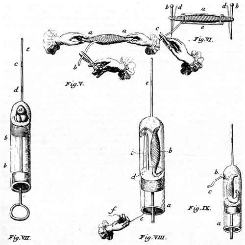 The Leyden jar: In Leyden, Holland (1746), Petrus van Musschenbroek (1692-1761) filled a jar with electrical fluid. |